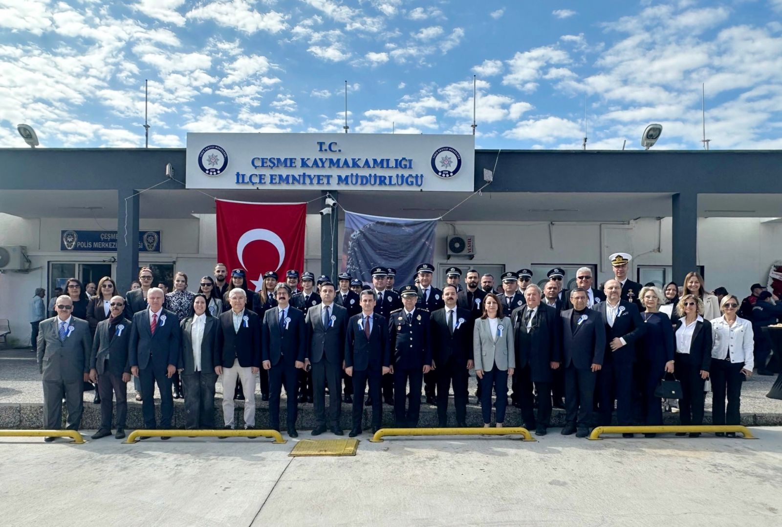 Emniyet Müdürlüğü’nde düzenlenen törene; Çeşme Kaymakamı Mehmet Maraşlı, Çeşme Kaymakam Refiki Adem Levent, Çeşme Belediye Başkan Yardımcısı Banu Ayhan, Çeşme Cumhuriyet Başsavcısı Mustafa Şen, Çeşme Ağır Ceza Mahkemesi Başkanı Emre Erdemir, İzmir Barosu Çeşme İlçe Temsilcisi Av. Nadire Erol, ilçe protokolü, siyasi parti temsilcileri, sivil toplum kuruluşları ile kurum amirleri katıldı.